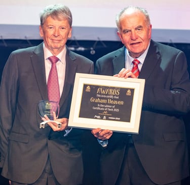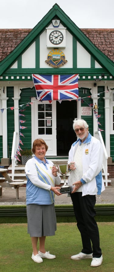 Jenny Corps presenting the Barry Corps Trophy to Alan Routledge (the first winner)
